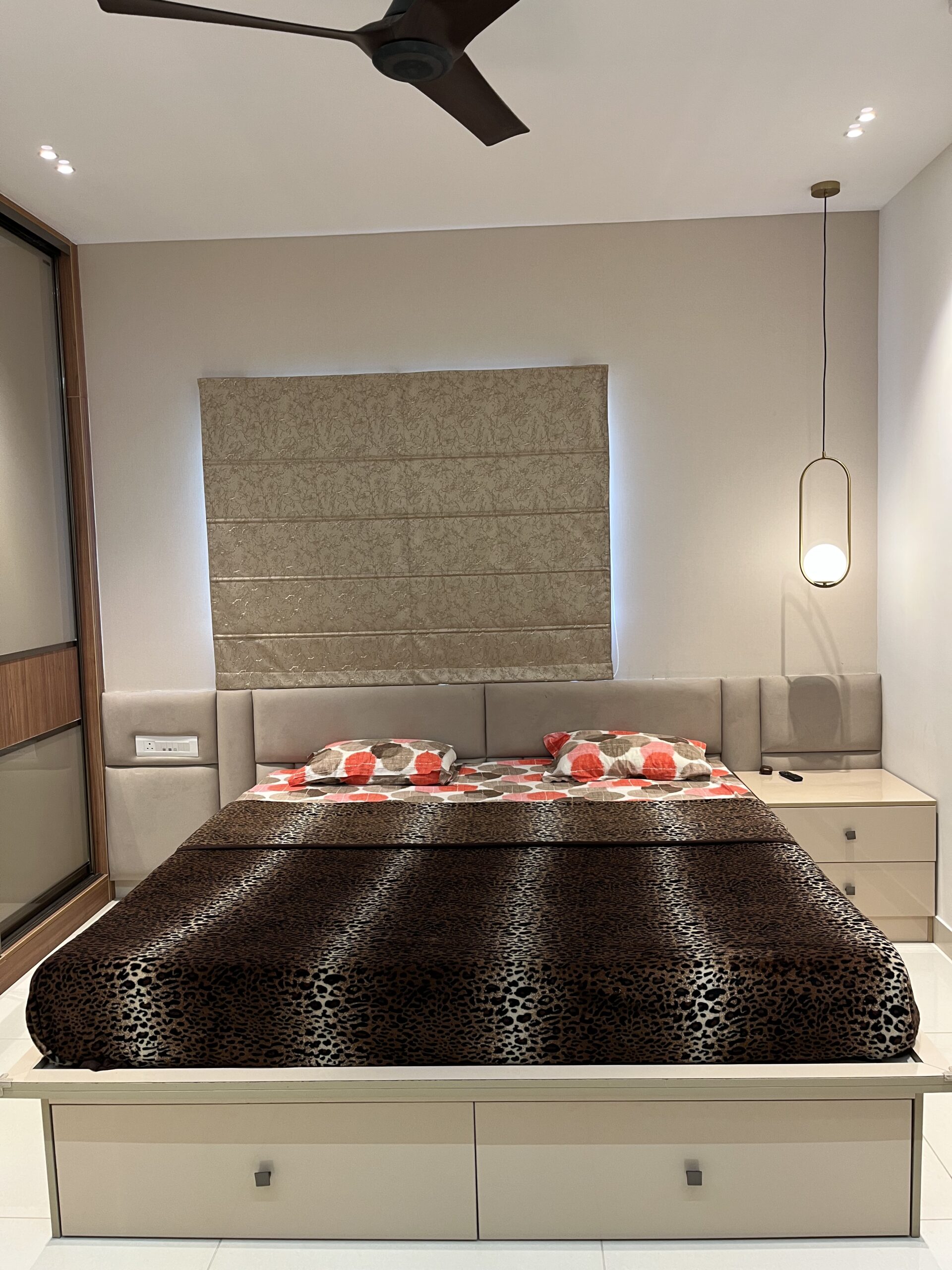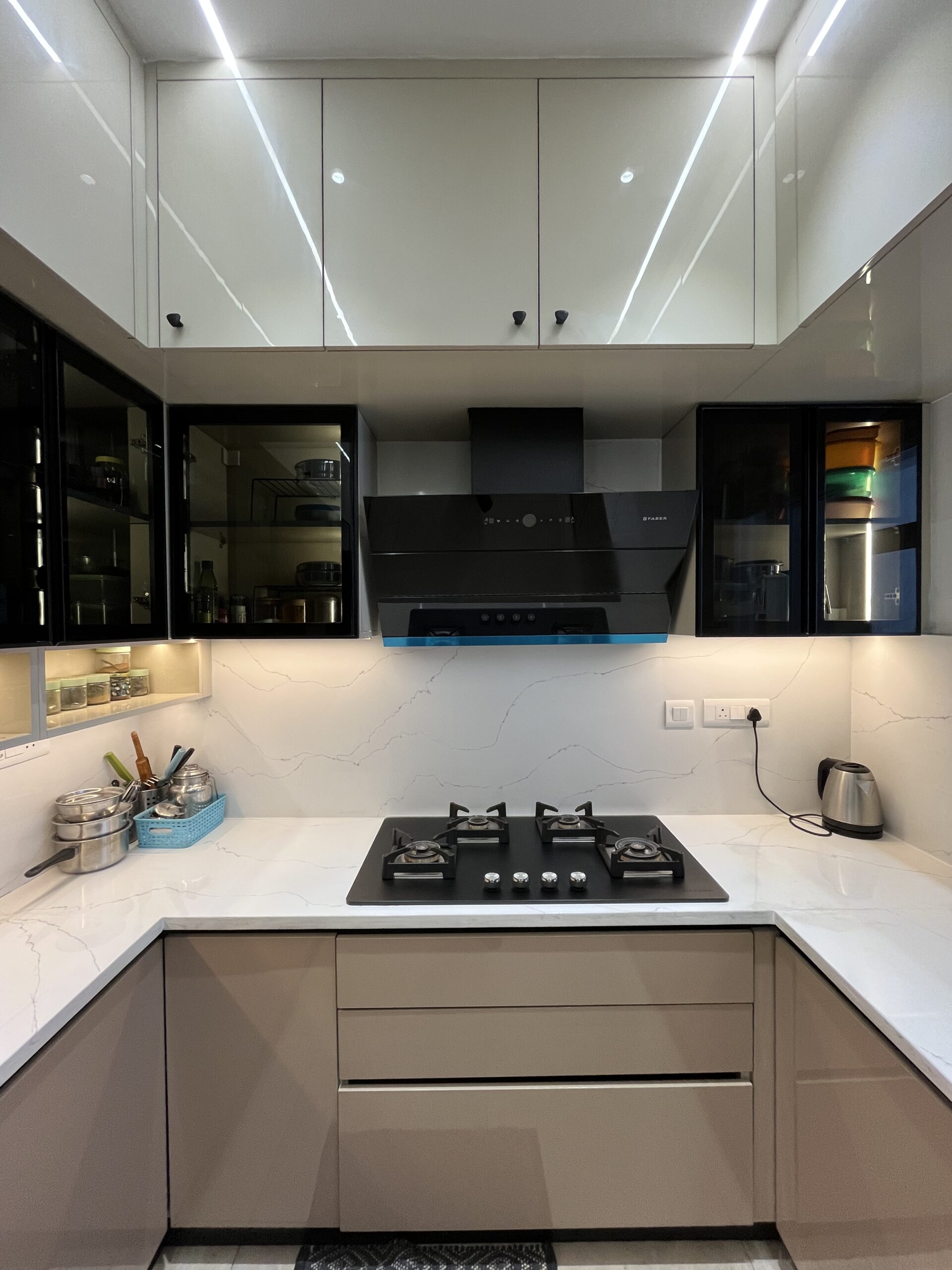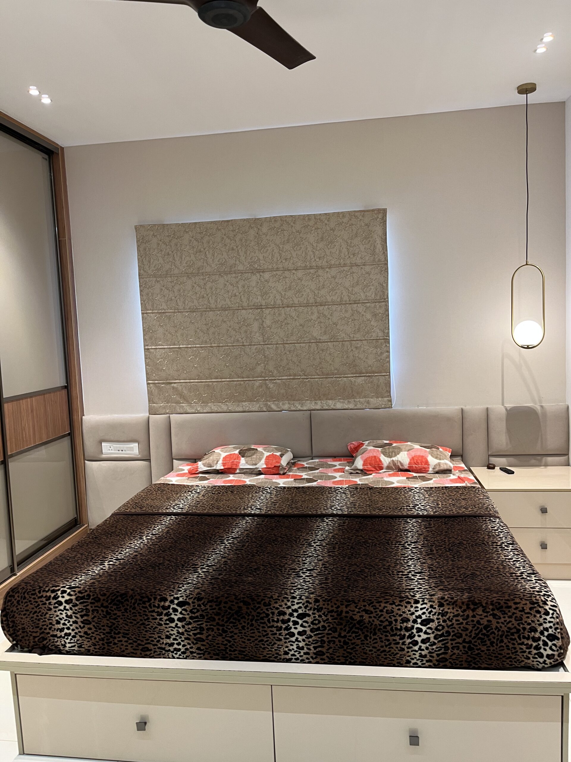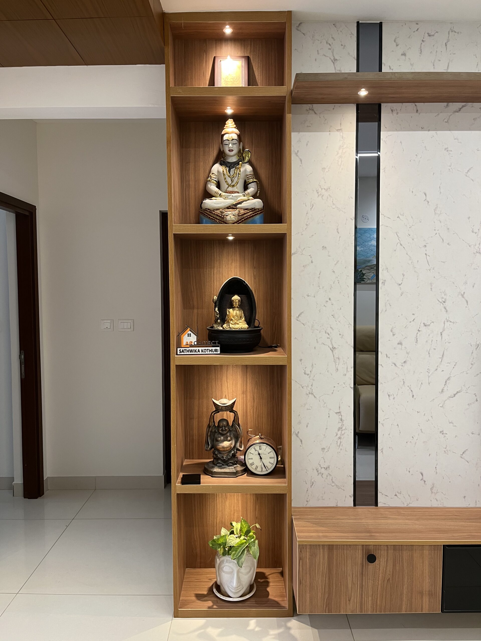 This project included complete home interiors such as a modular kitchen, custom wardrobes, TV unit design, false ceiling, and decorative lighting. Every space was carefully planned to maximize storage while maintaining a clean and elegant design. The interiors feature modern finishes, durable materials, and thoughtfully designed layouts suitable for comfortable apartment living.