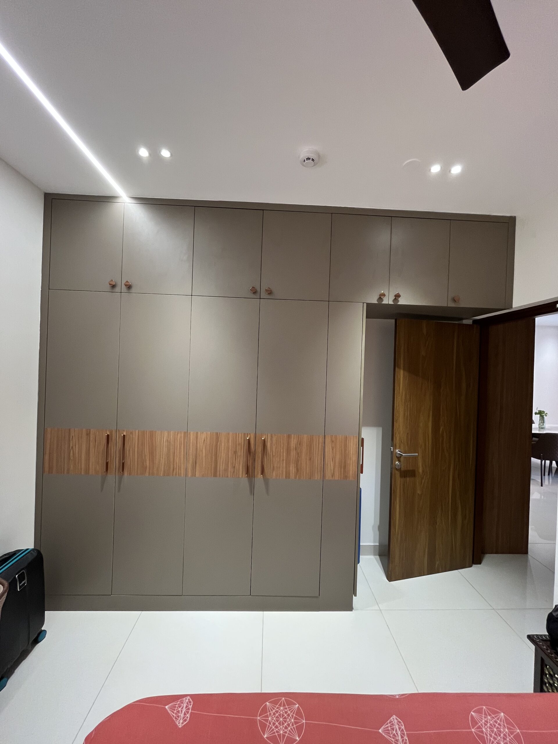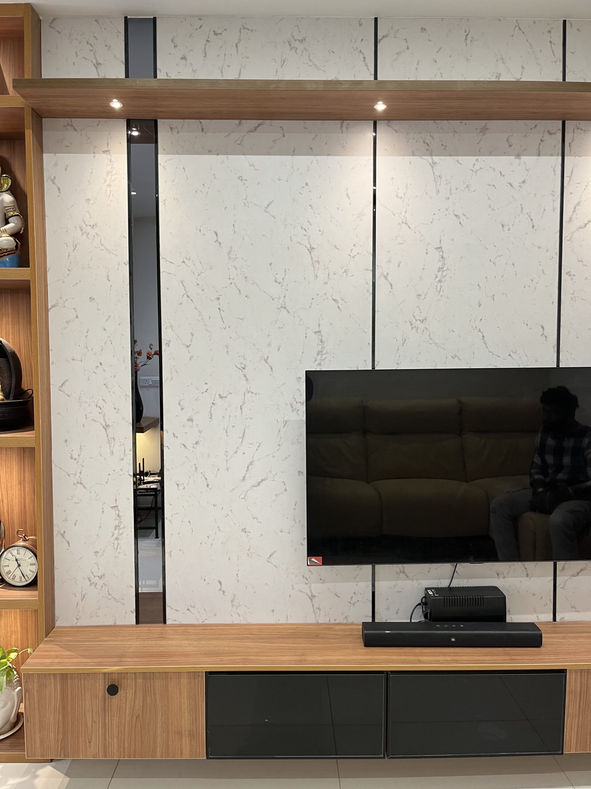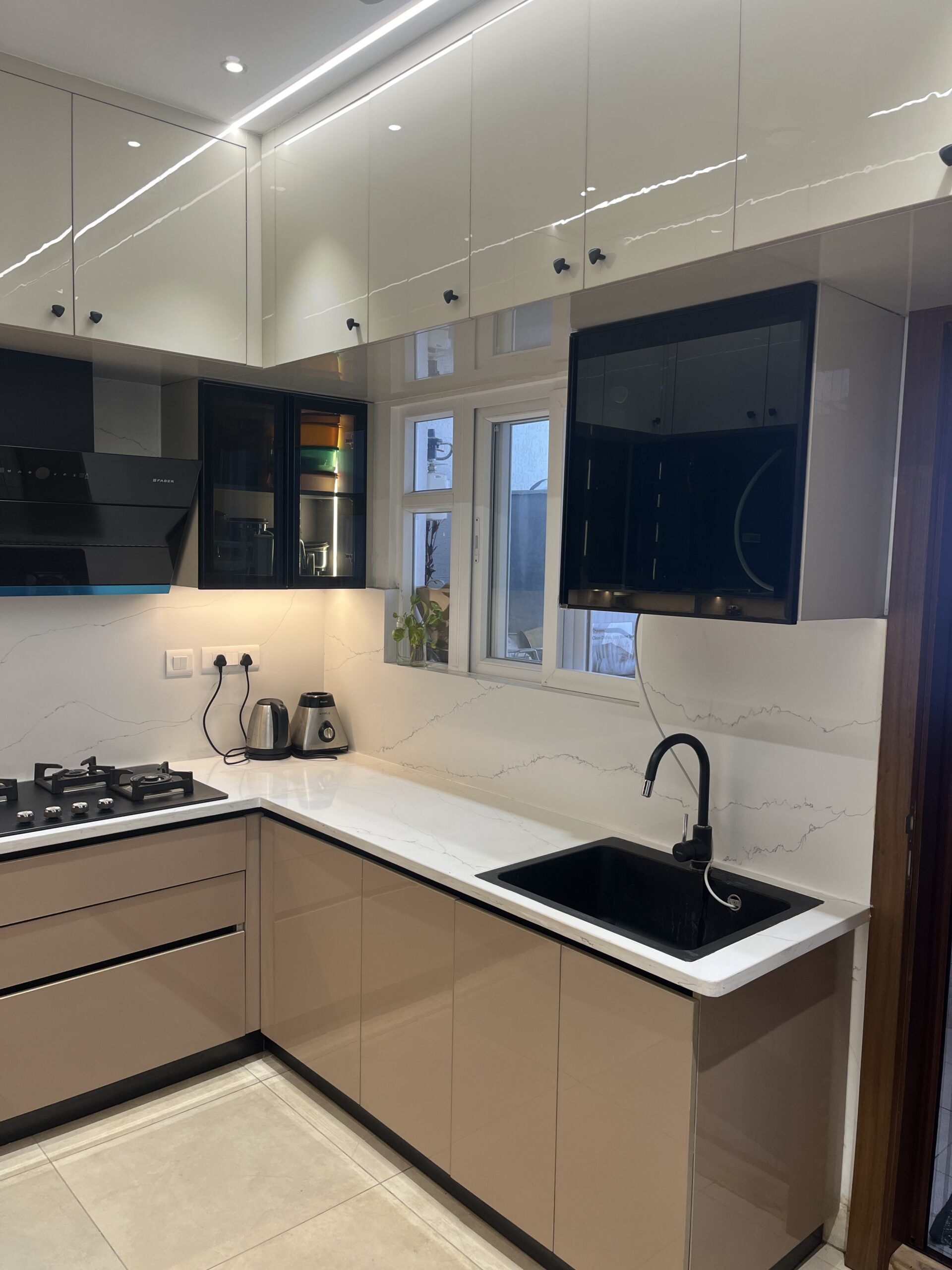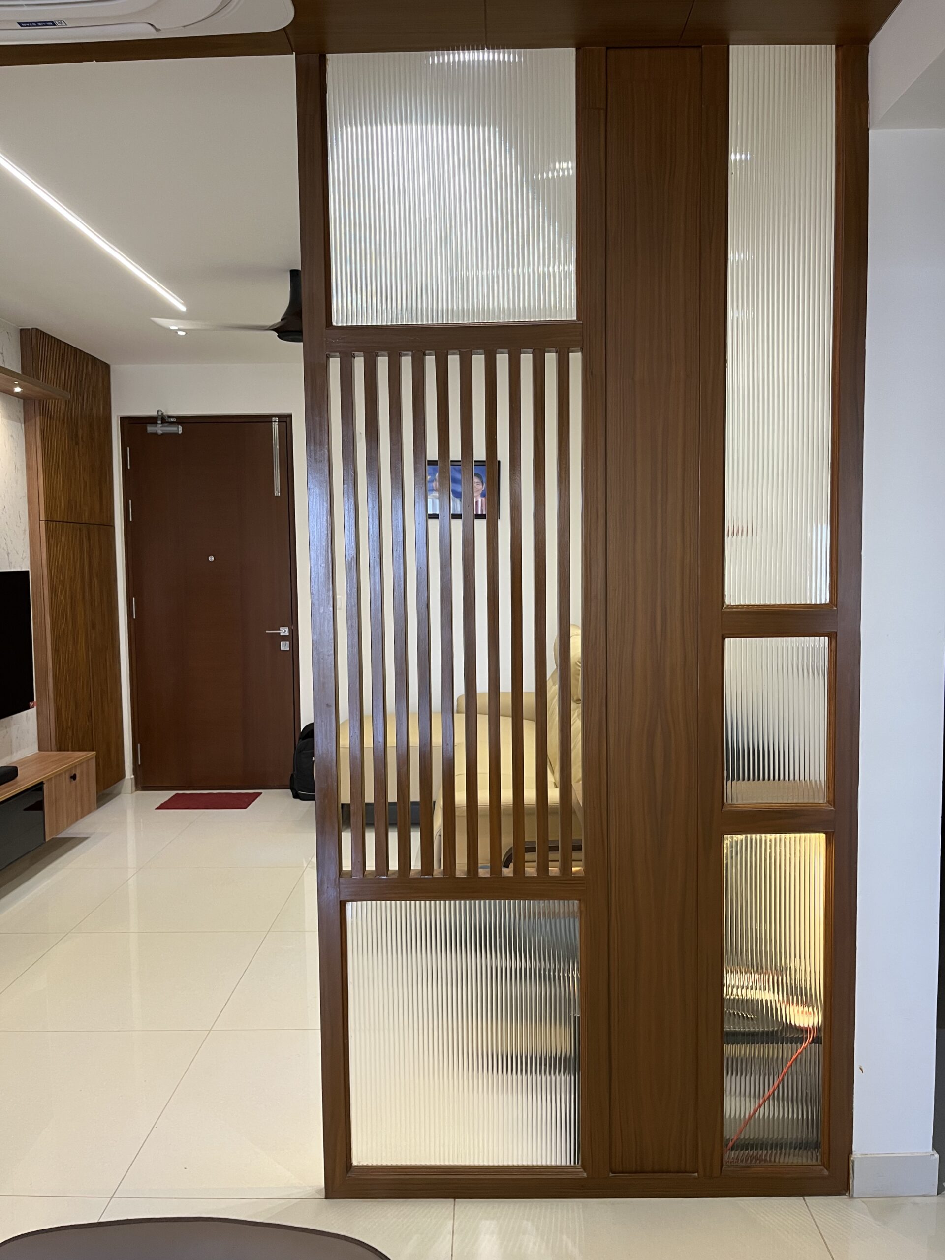 This project included complete home interiors such as a modular kitchen, custom wardrobes, TV unit design, false ceiling, and decorative lighting. Every space was carefully planned to maximize storage while maintaining a clean and elegant design. The interiors feature modern finishes, durable materials, and thoughtfully designed layouts suitable for comfortable apartment living.