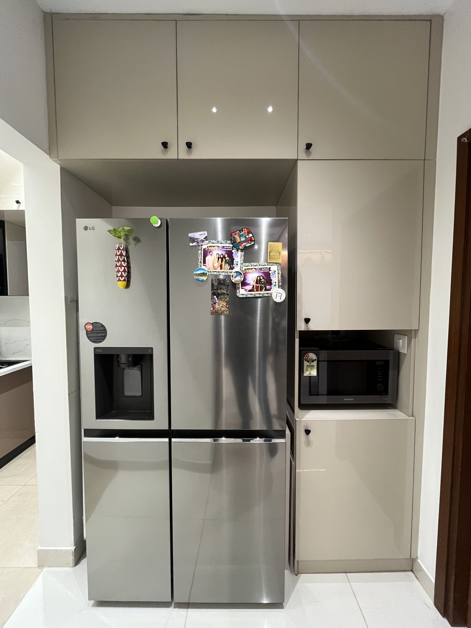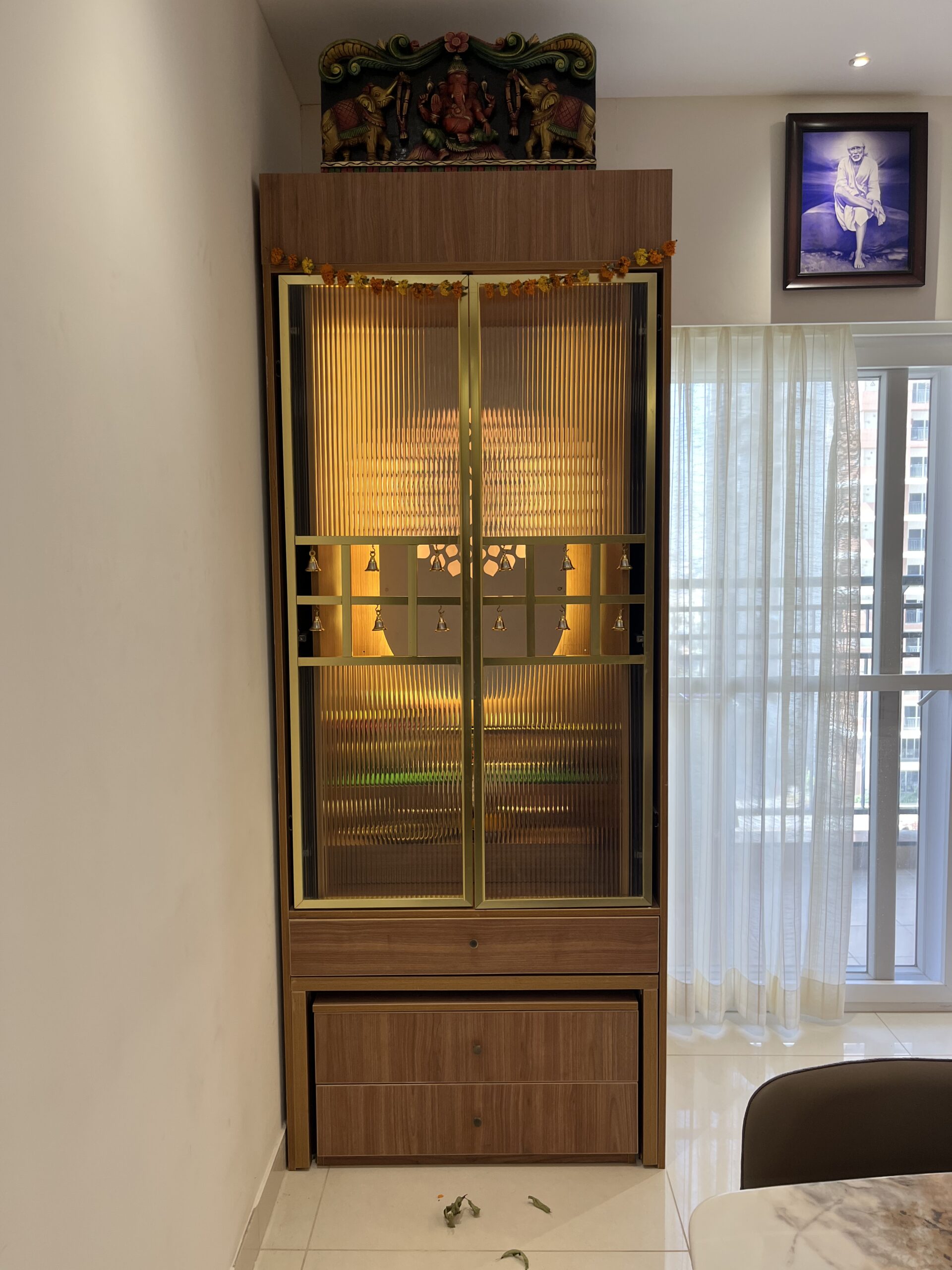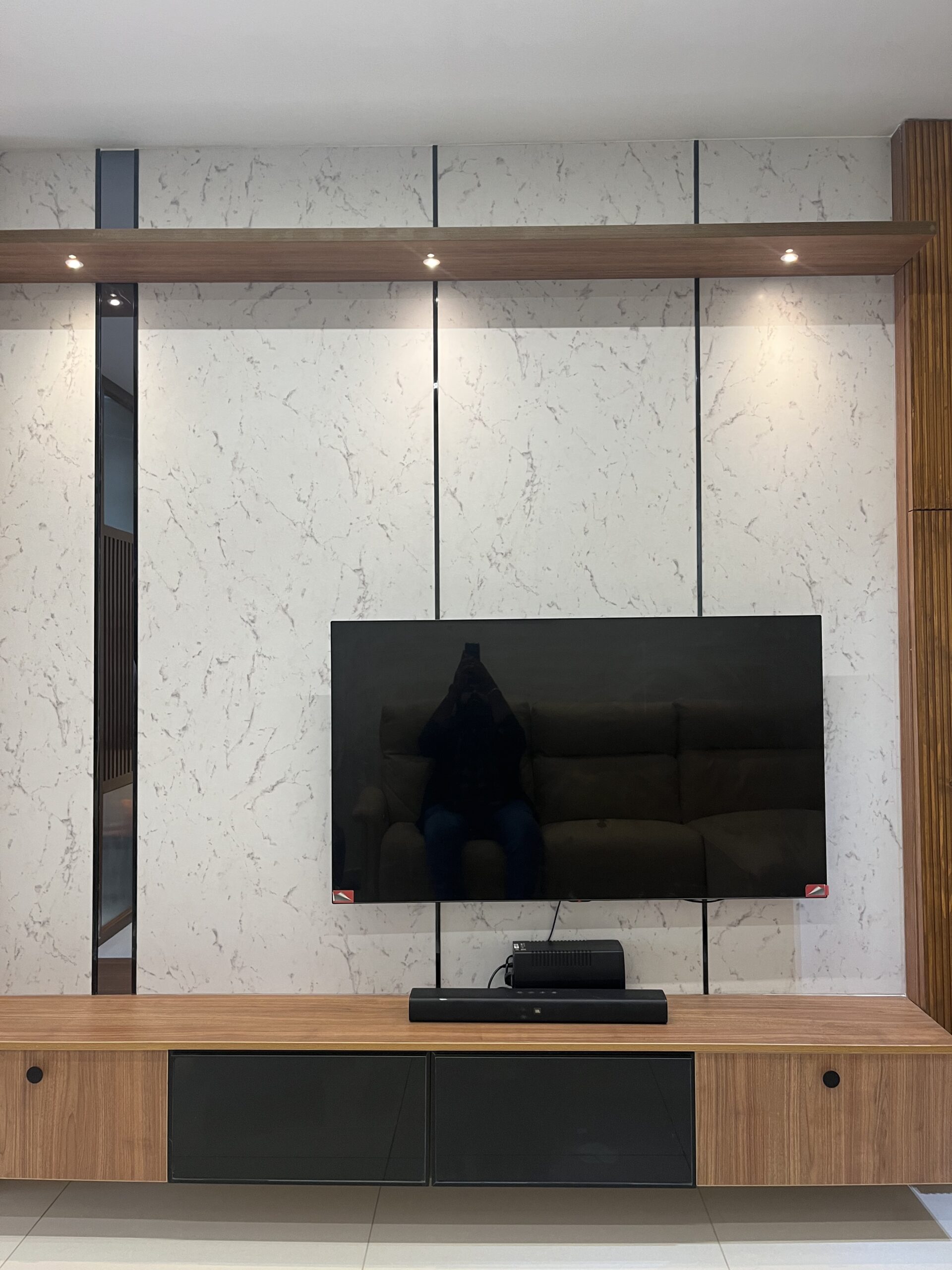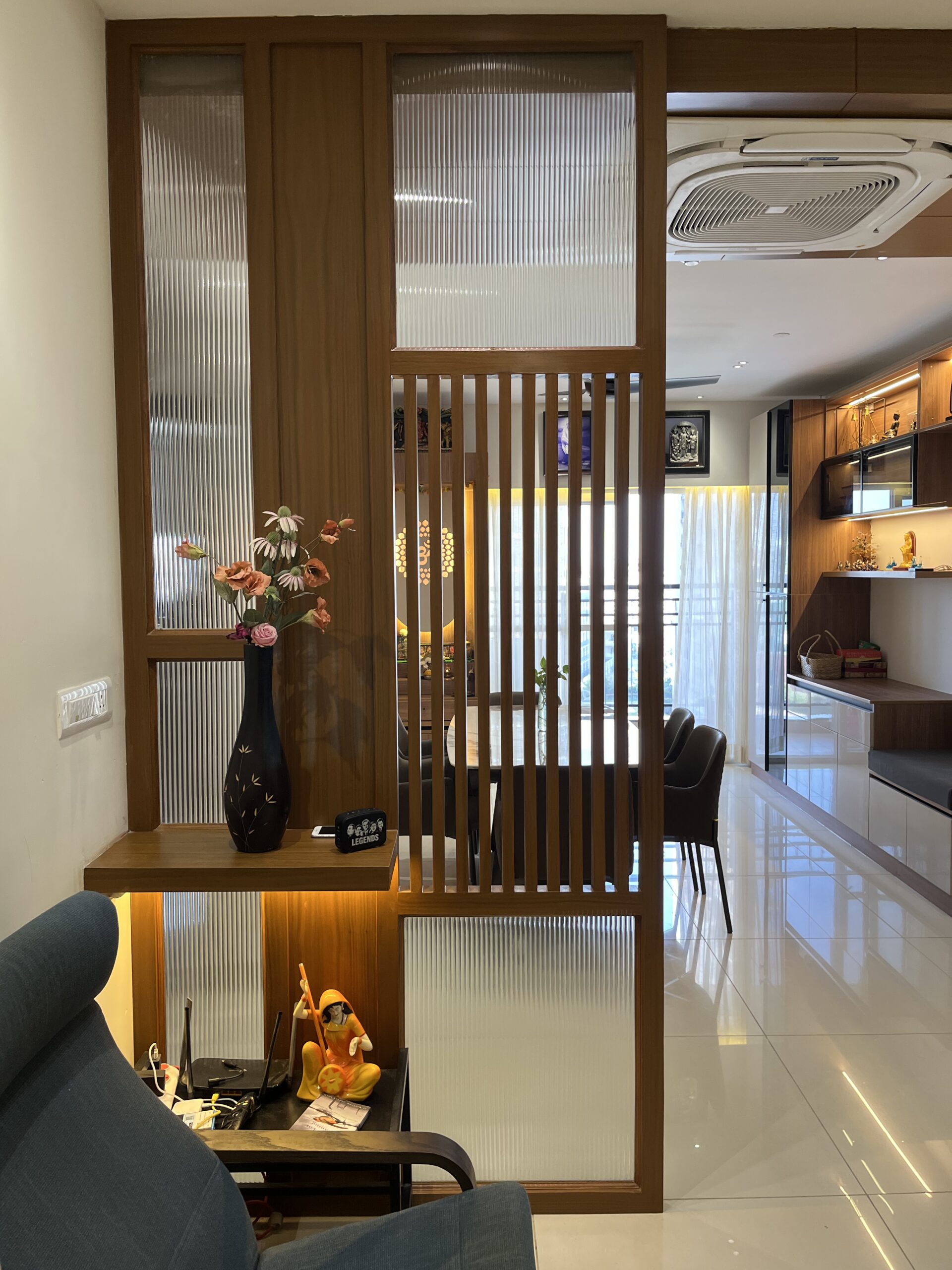This project included complete home interiors such as a modular kitchen, custom wardrobes, TV unit design, false ceiling, and decorative lighting. Every space was carefully planned to maximize storage while maintaining a clean and elegant design. The interiors feature modern finishes, durable materials, and thoughtfully designed layouts suitable for comfortable apartment living.