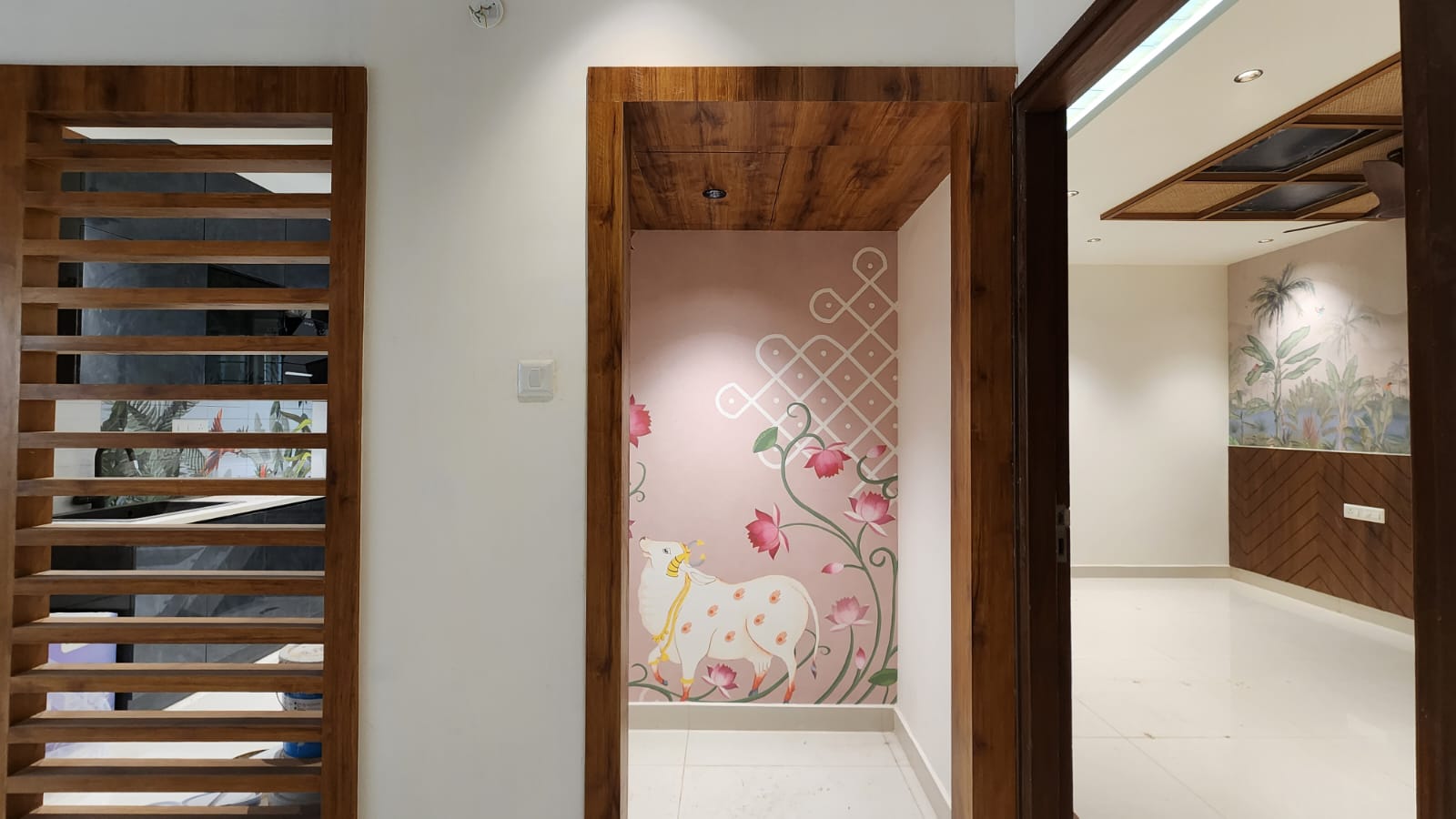 This 3BHK apartment in ‘My Home – Mangala’ seamlessly blends modern design with a tranquil atmosphere. Neutral tones and natural materials create a sense of serenity, while strategically placed pops of color and art pieces add personality. The layout prioritizes functionality, maximizing both space and comfort for the residents.
